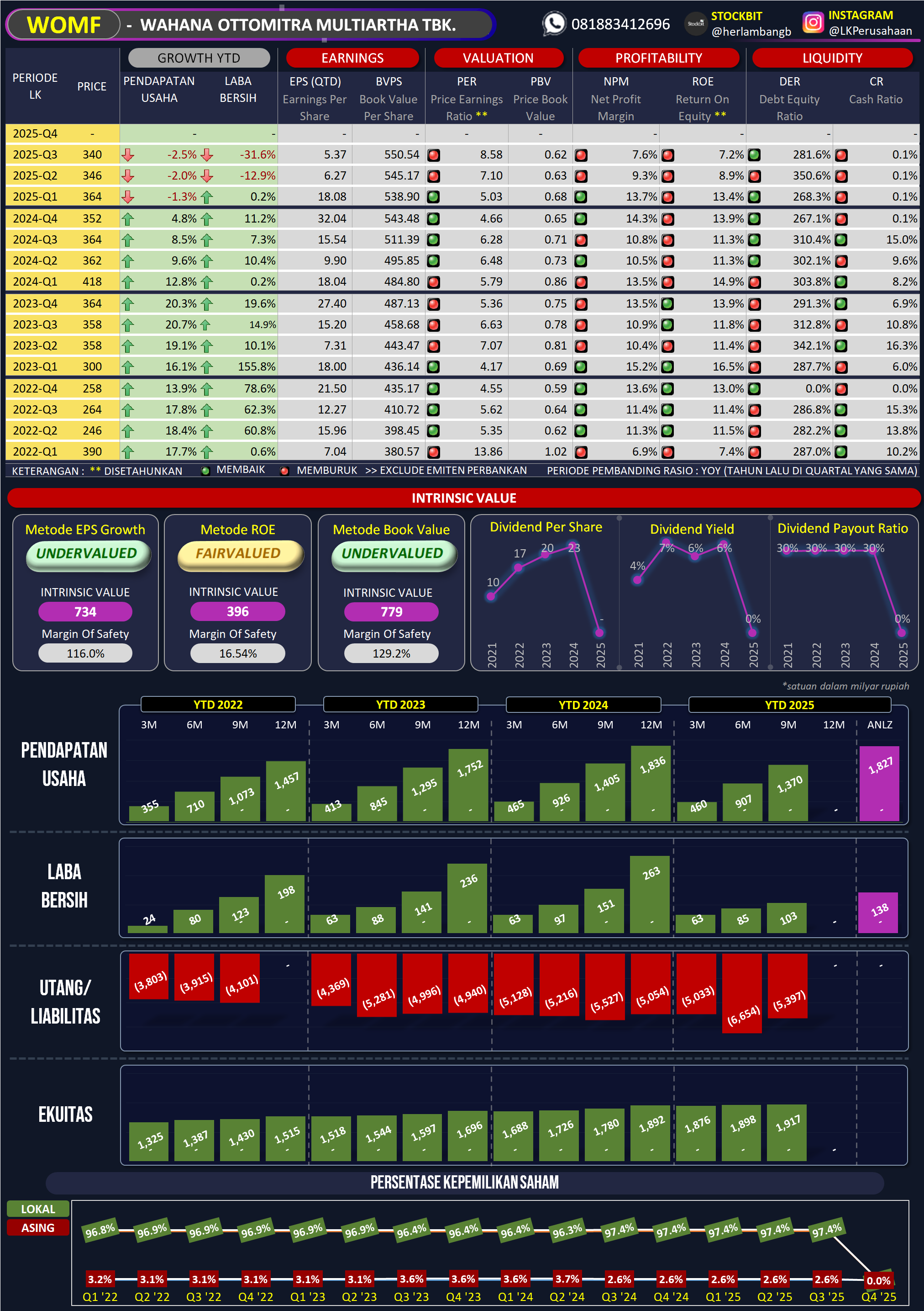 Implikasi: WOMF dikendalikan Maybank, sehingga governance relatif baik. Namun karena free float kecil, sahamnya mudah digerakkan oleh bandar.