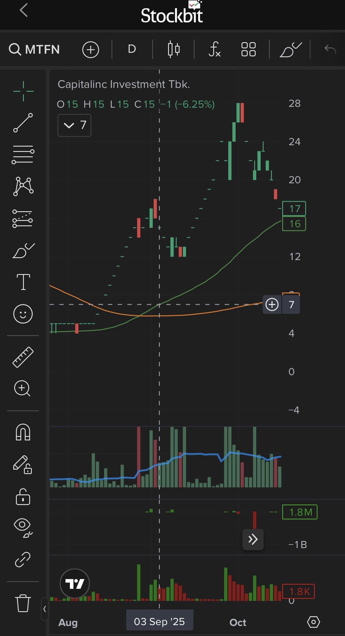 Kalo mau make teknikal, utamanya gap. Ini $MTFN di belakang juga ada gap di harga 7 pak, masa iya MTFN balik ke 7?😂