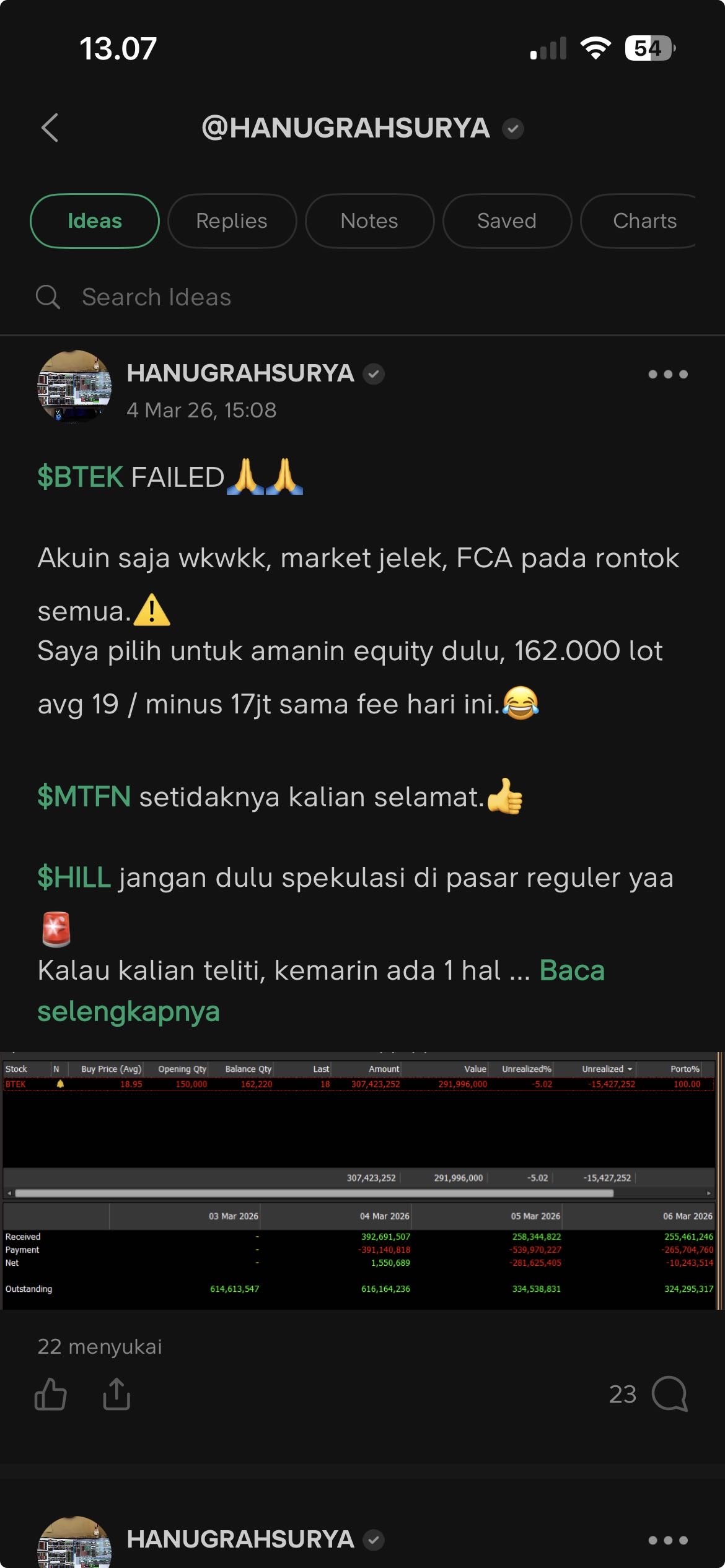 https://stockbit.com/post/29251248, nih $BTEK kemarin saya CL 16jt di 18, klo saya hold skrg loss 34jt anπ