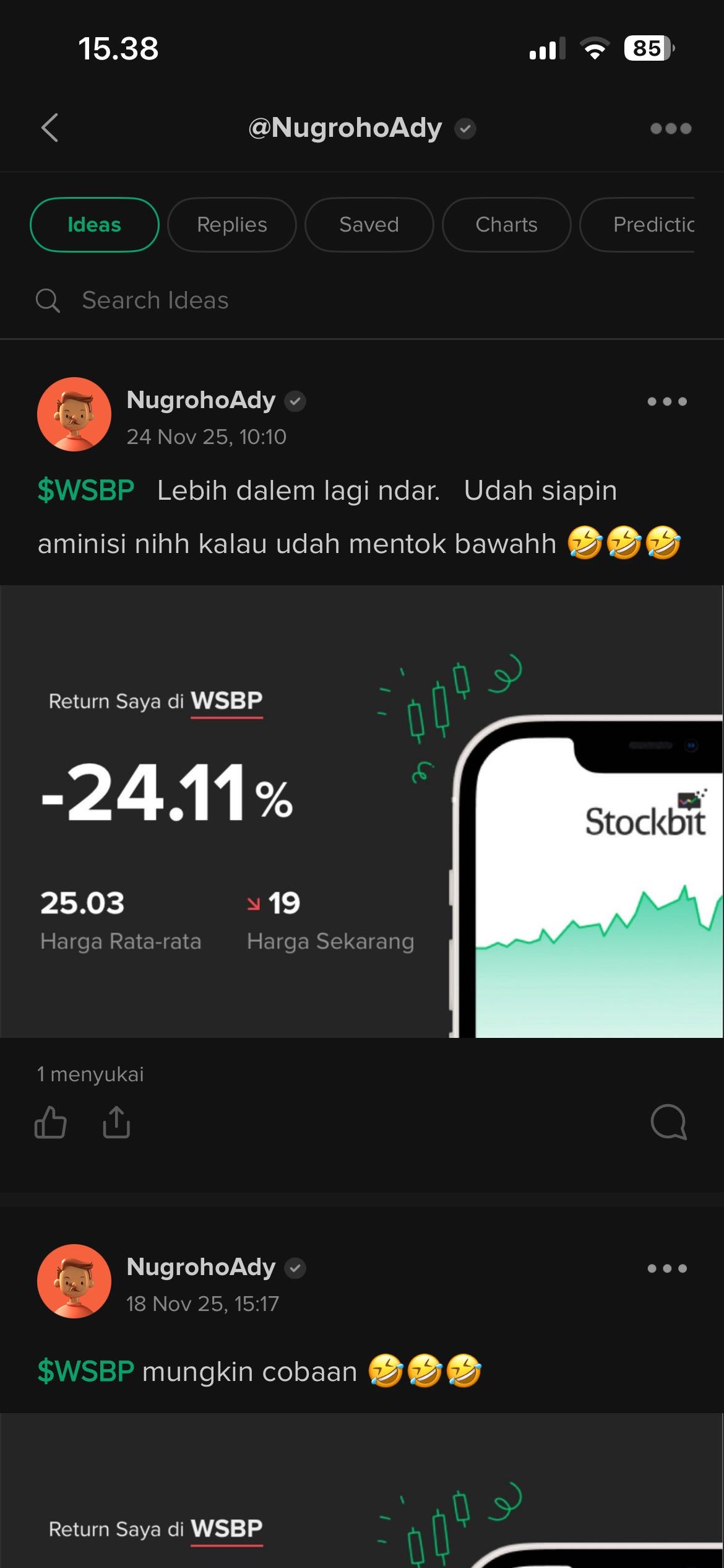 2. $WSBP, ini sudah diinfo sejak harganya masih di 19, sekarang floating di 5.5%.π