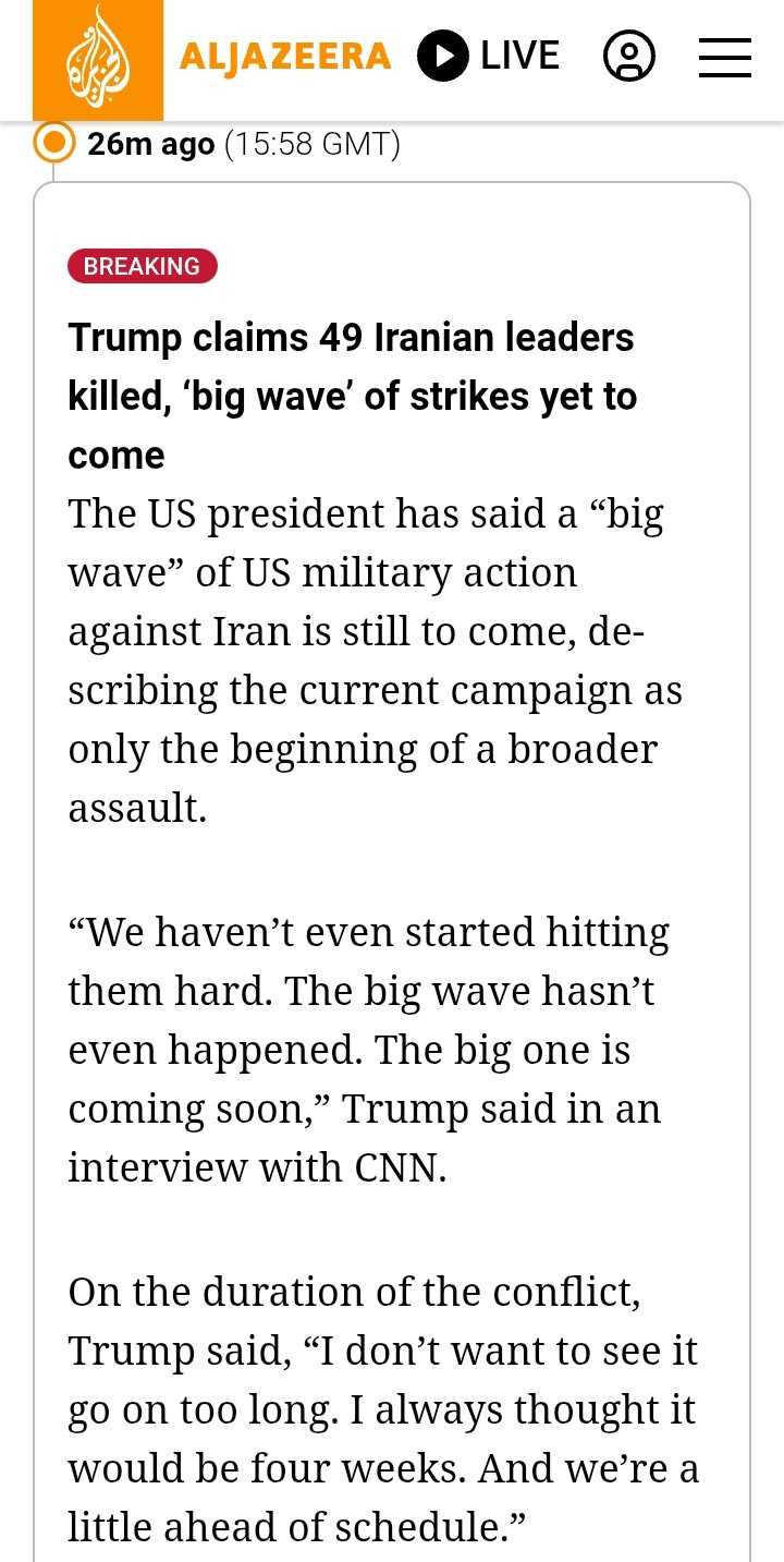 Perang persia kali ini sepertinya bakal lama bisa berminggu2, semoga aja sih ga lama2 ya harapan ane nanti malem si trumpet kasih statement yang memberikan kesejukan kayak misalnya akan ada perundingan lanjutan sama iran bahkan kalo bisa ada gencatan senjata..