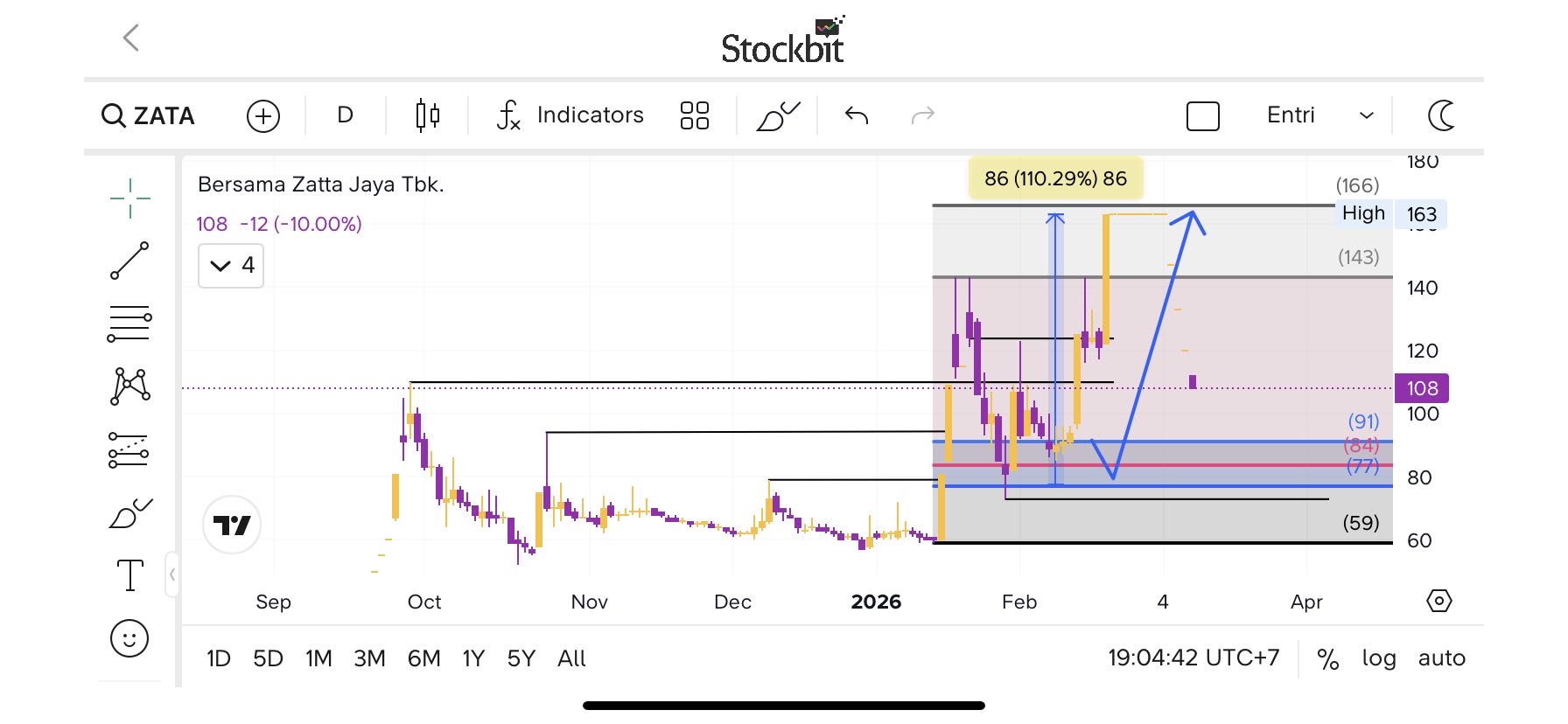 Target bullish ke 110-118 kalo 118 tembus lanjut ke 125