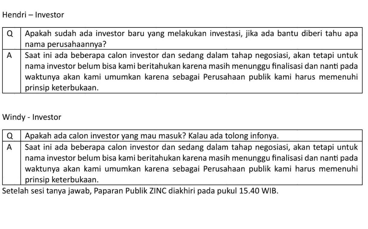 Perubahan direksi/komisaris seringkali menandakan bahwa manajemen perusahaan pengin ngowahi arah strategis utawa tanggapan terhadap kondisi internal/eksternal. Ing kasus ZINC, agenda iki bisa nuduhaké perusahaan pengin nguataké tata kelola utawa nyiapaké langkah korporasi anyar (contoh: restrukturisasi, efisiensi, atau recapitalisation).