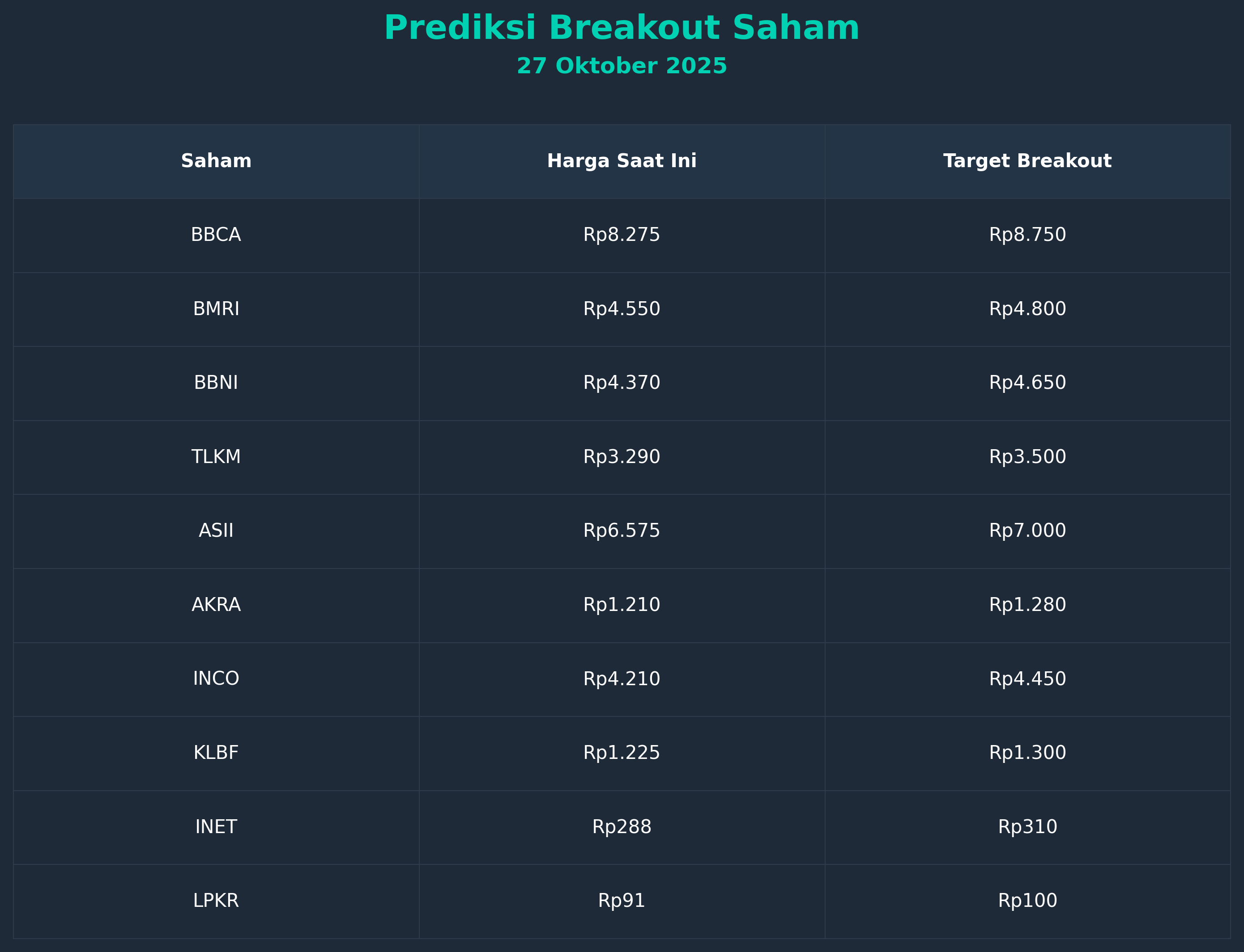 KABARBRUSA.COM – Aktivitas perdagangan saham di Bursa Efek Indonesia (BEI) pada Jumat, 25 Oktober 2025, ditutup dengan dominasi saham sektor perbankan.