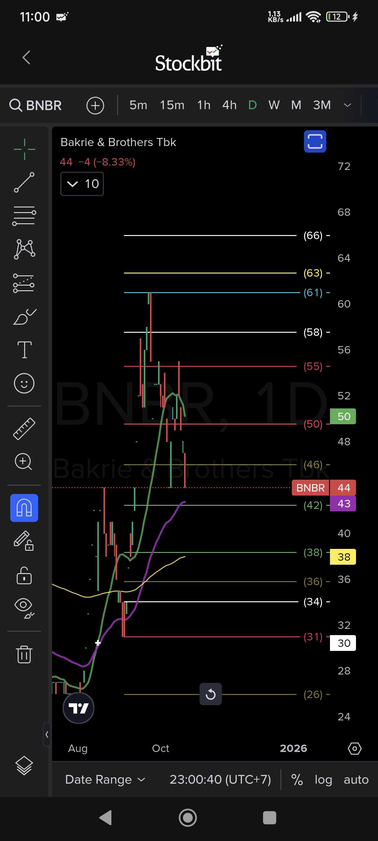 Entry sebagian + SL < ~Rp 35 – 38 Tunggu breakout > Rp 48 – 50