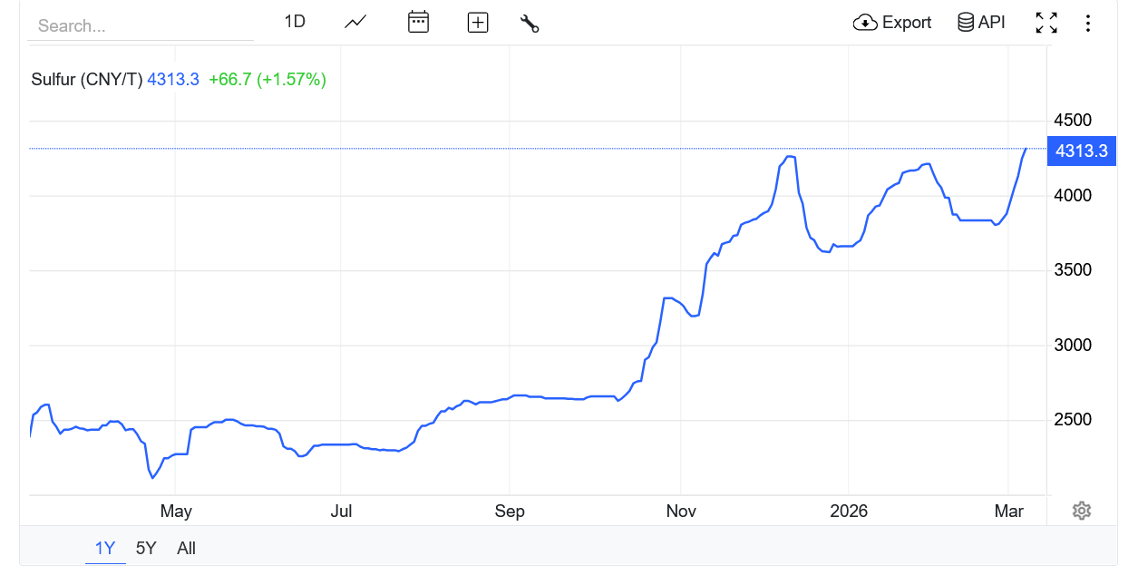 Meskipun harga sulfur tergolong murah, tapi dalam setahun terakhir kenaikannya sudah tinggi, dan mungkin akan bisa lebih tinggi lagi seiring waktu bila konflik terus berlanjut