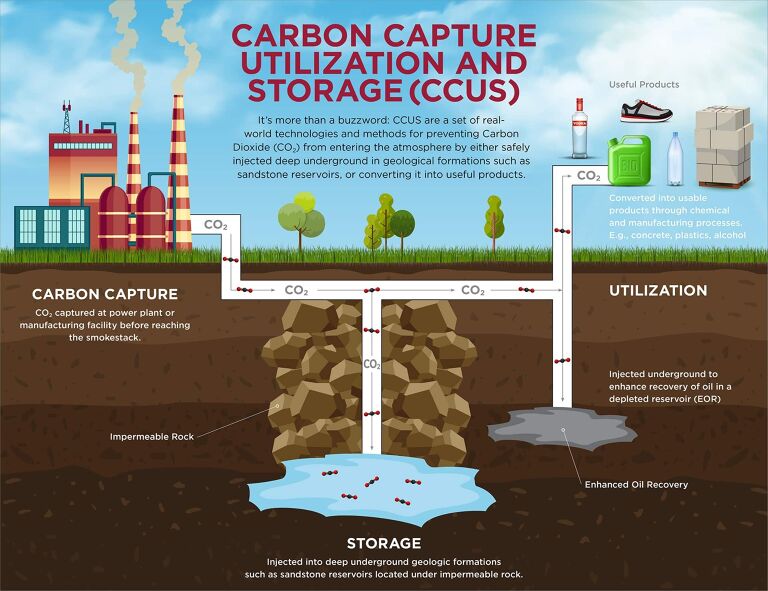 - Storage (Simpan): Sisa gas disuntikkan jauh ke bawah tanah (ke dalam bekas sumur minyak) agar tersimpan permanen dan tidak merusak atmosfer