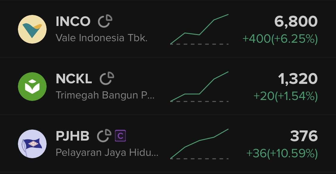 on track gaes, minggu lalu sy sudah di dalam $ADMR $INCO $MBMA batasan TP sy hanya langit ketujuh, bkn bulan 🥳