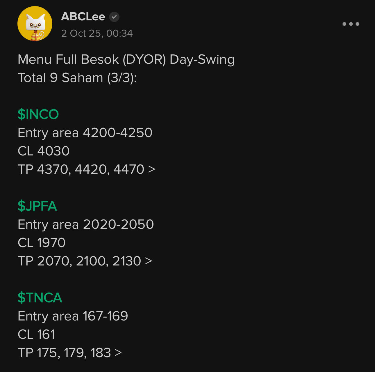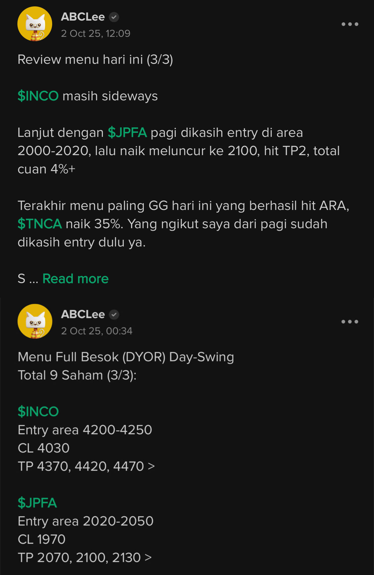 Terakhir menu paling GG hari ini yang berhasil hit ARA, $TNCA naik 35%. Yang ngikut saya dari pagi sudah dikasih entry dulu ya.