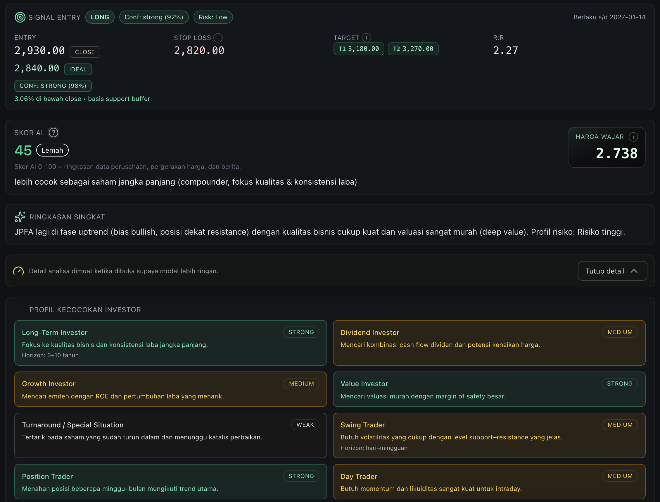 $JPFA ini lebih cocok buat kamu yang value investor.