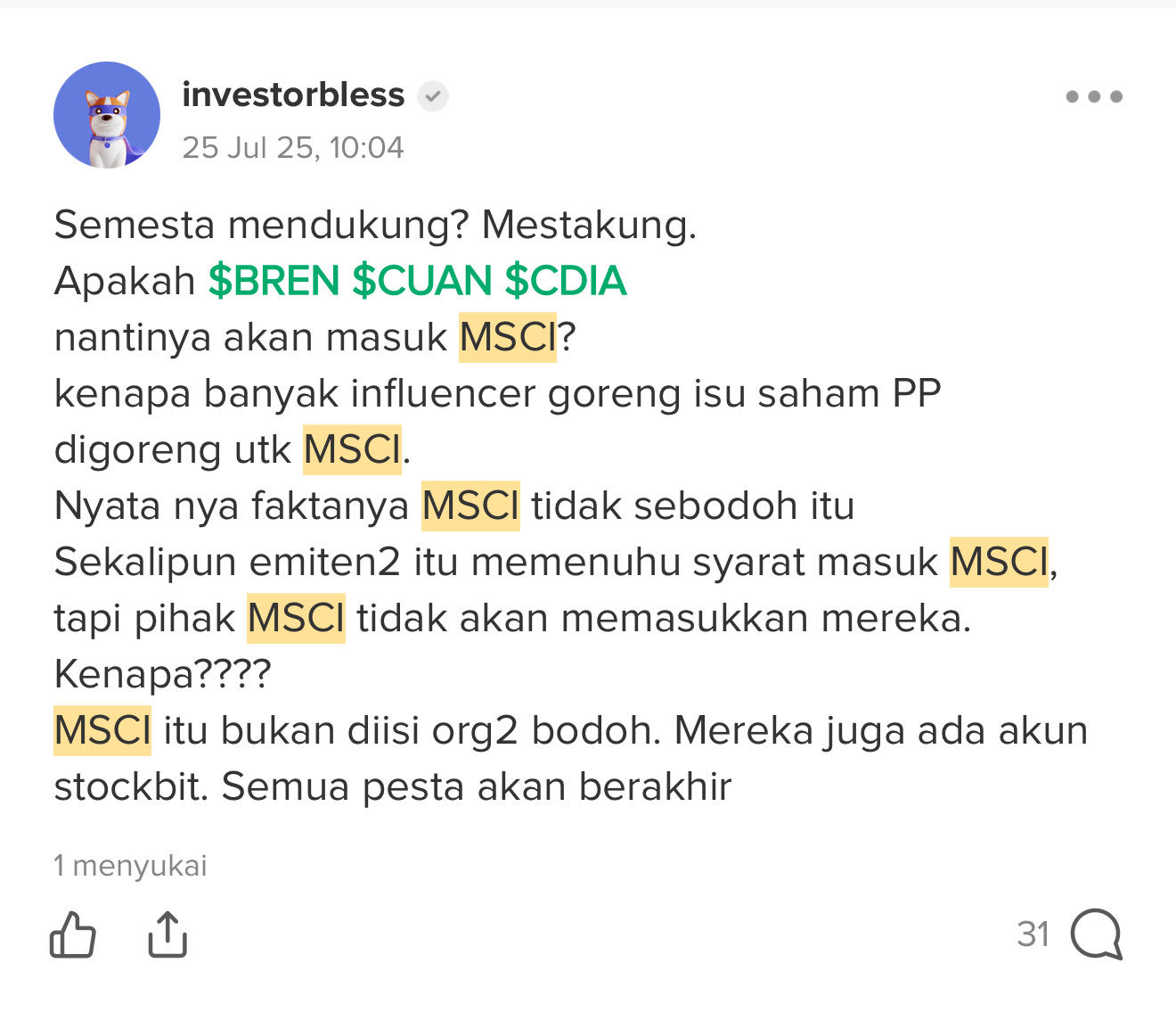Saat semua org bicara saham pak PP akan masuk MSCI